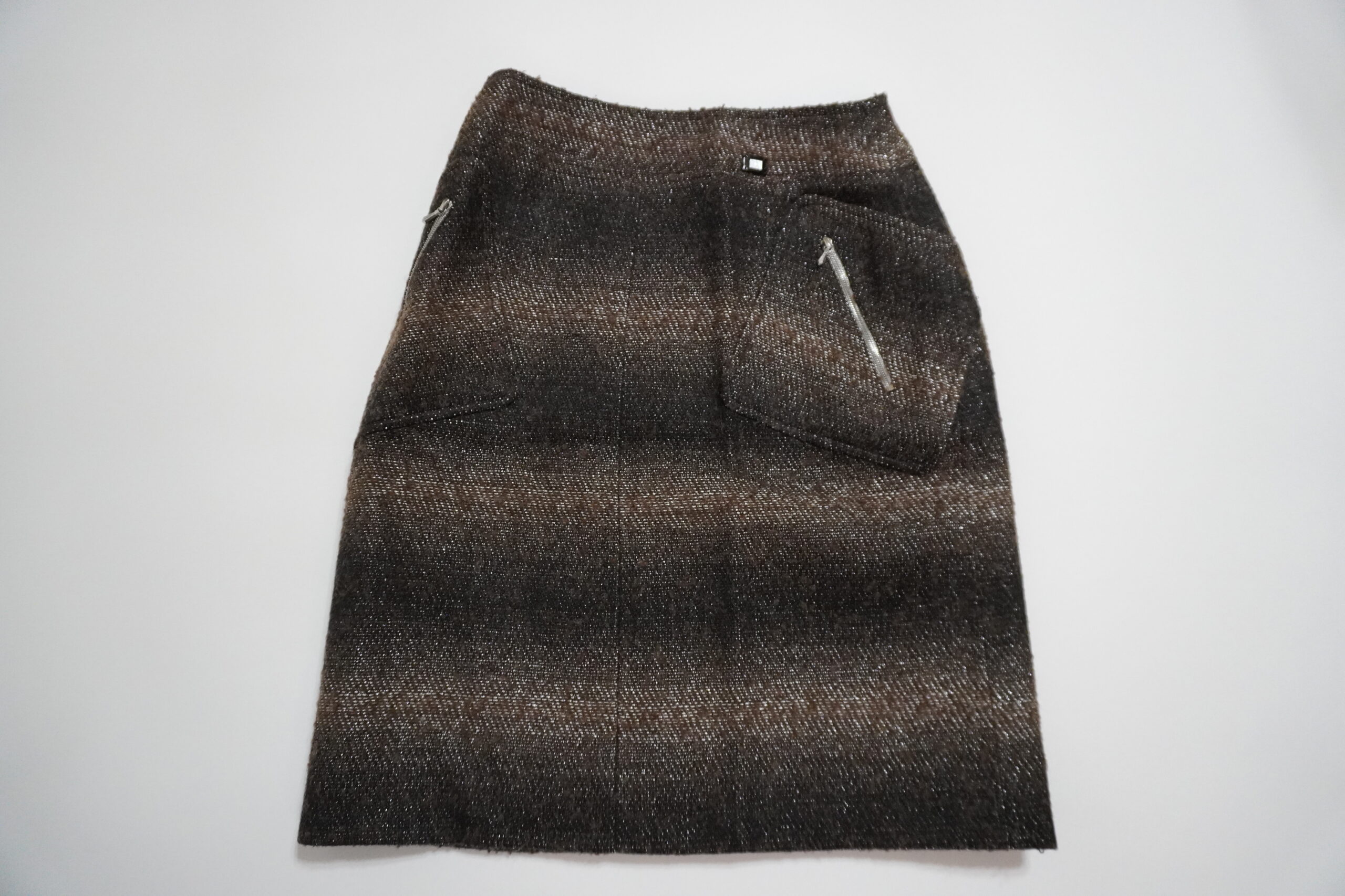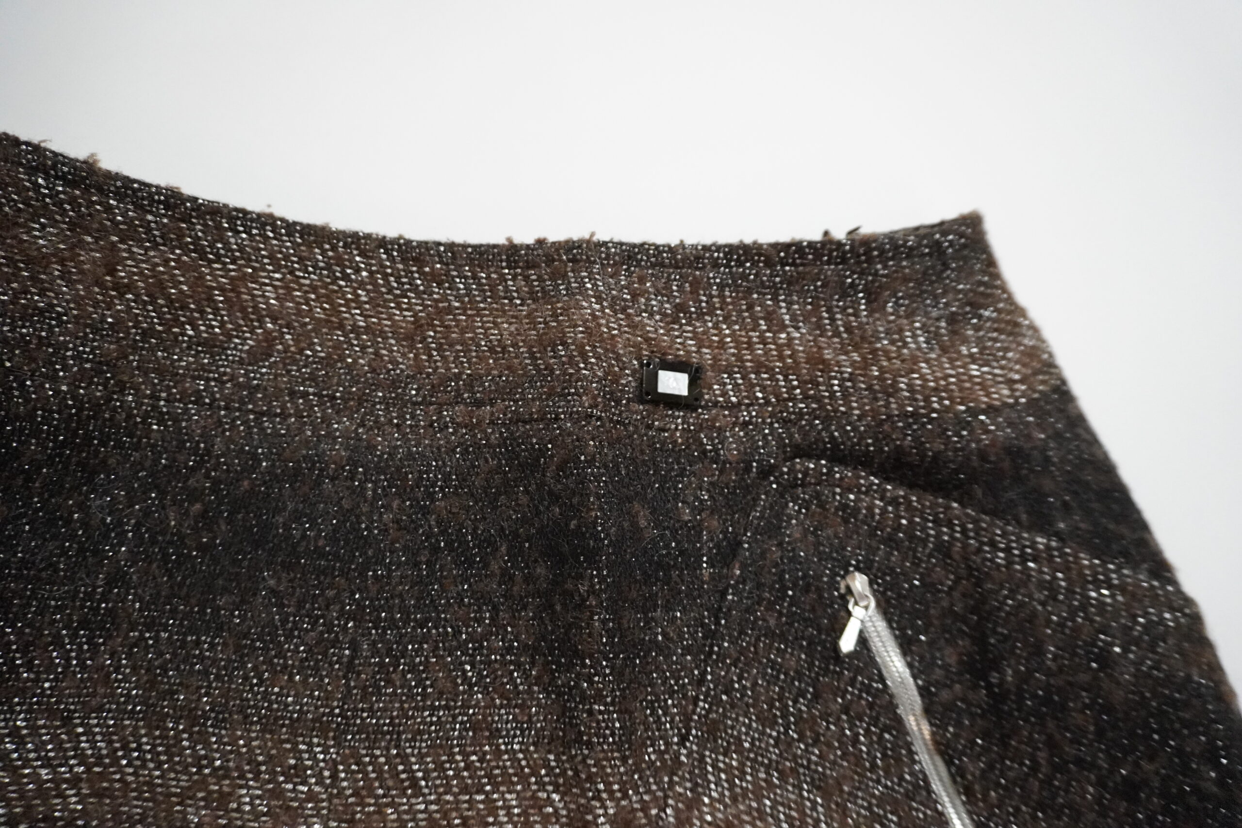 - アクセントのジッパー: シャネル特有の高級感あるジッパーがポケットに配されており、シンプルなトップスと合わせるだけでコーディネートが決まります。